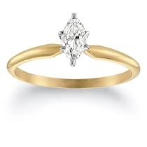 This 14k gold diamond ring is prong set with 3 round diamonds. The total diamond weight is 0.25 cts. The diamonds are HI color and I1 clarity. The ring band measures approximately 1.50 mm wide and 1.0 mm thick.