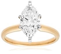 This 14k gold diamond ring is prong set with 3 round diamonds. The total diamond weight is 1 carat. The diamonds are GH color and I1 clarity. The ring band measures approximately 1.80 mm wide and 1.0 mm thick.